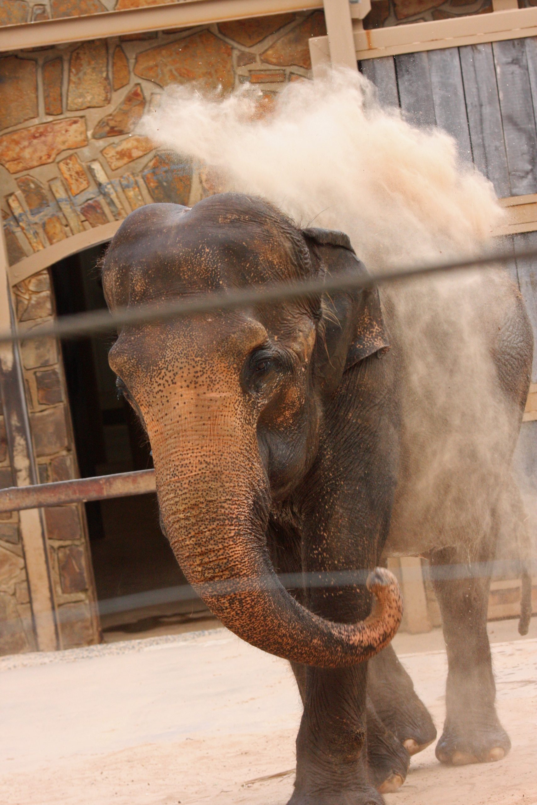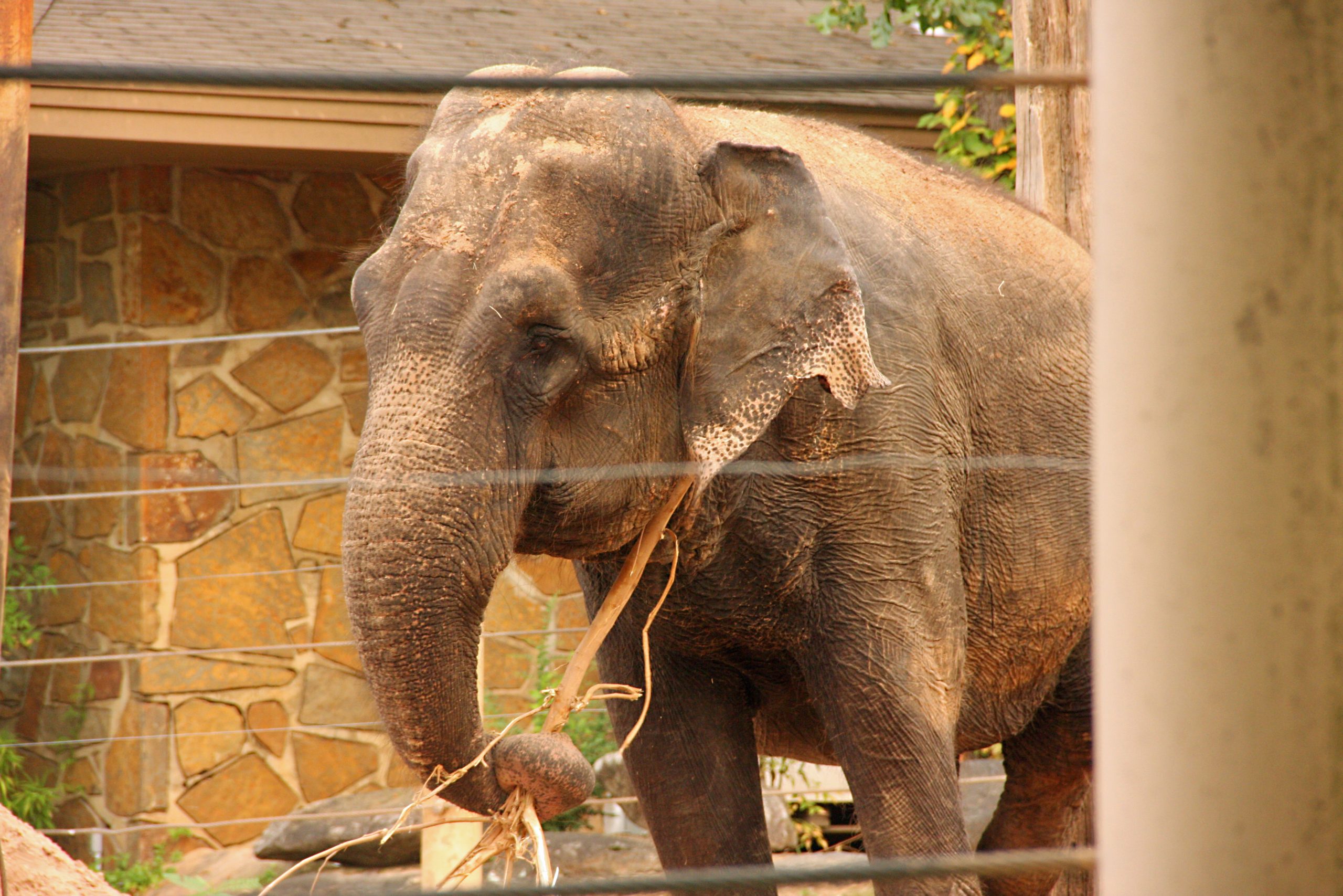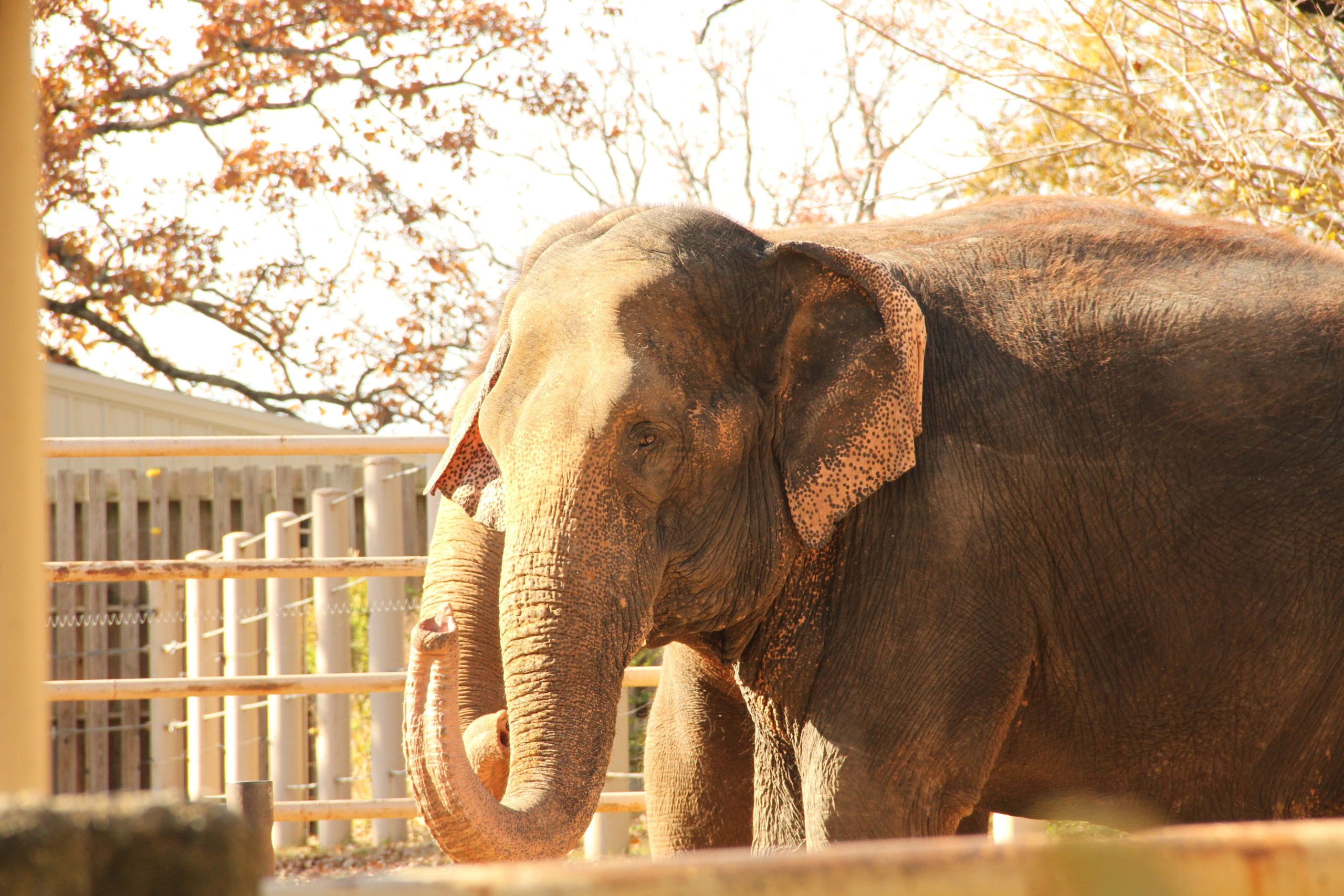 Zina, originally from England’s Billy Smart Circus, she was imported to the United States in 1972. Like Jewell, she spent many years performing with Ringling Bros. before her retirement in 2005. Zina is easily recognized, with a long, narrow trunk that is partially paralyzed and uniquely sunken cheeks caused by crooked teeth. Although she’s the smallest in stature, she’s known for her big personality—often the first to trumpet a greeting or show excitement. Zina joined the Zoo’s elephant family as a companion for Ellen, and after Ellen’s passing, she welcomed new herd members Babe and Sophie in 2013.