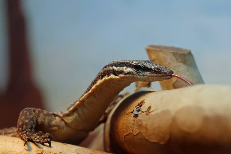 - These members of the lizard family Varanus, have a forked tongue that collects scent molecules for analysis. Molecular analysis is conducted by the Jacobson’s Organ in the top of the mouth.
