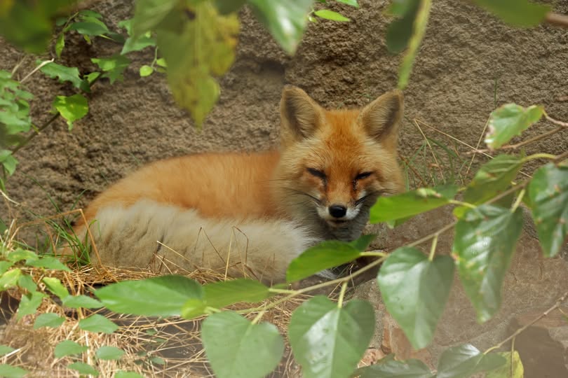 • The red fox will continue to hunt even when its tummy is full. It stores the extra food under leaves, snow or dirt, to be eaten later.