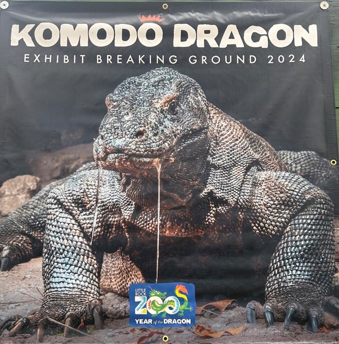 A banner advertising the upcoming Komodo Dragon exhibit, under construction in 2024. Photo Credit: Misty Waddle