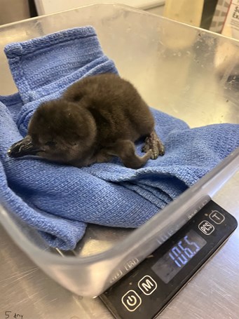 The incubator becomes the lifeline for the chick. Penguin eggs need to lose 13-17% of their initial weight over 36-42 days, and our team monitors them closely to ensure proper weight loss. Once the hatching process begins, the incubator is converted into a brooder, creating a safe environment for the chick until they were ready to return to their nests.
