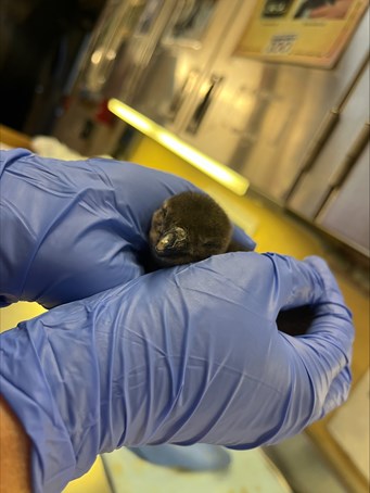 In the early stages, penguin parents incubate their eggs, but Arkansas’ humid summer can pose challenges for embryo development. To ensure the chick had the highest chance of survival, our team stepped in with artificial incubation for the first chick hatched this year. After the penguin parents incubated the eggs for the first 10 days—a crucial period to improve hatch rates—the egg was moved to an incubator with carefully controlled temperature and humidity.